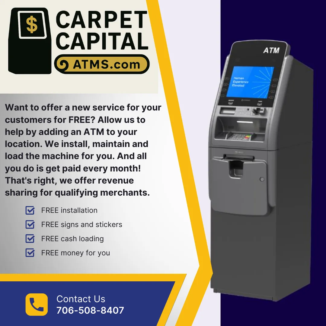 Work with our partner Carpet Capital ATM's to bring an ATM to your business.